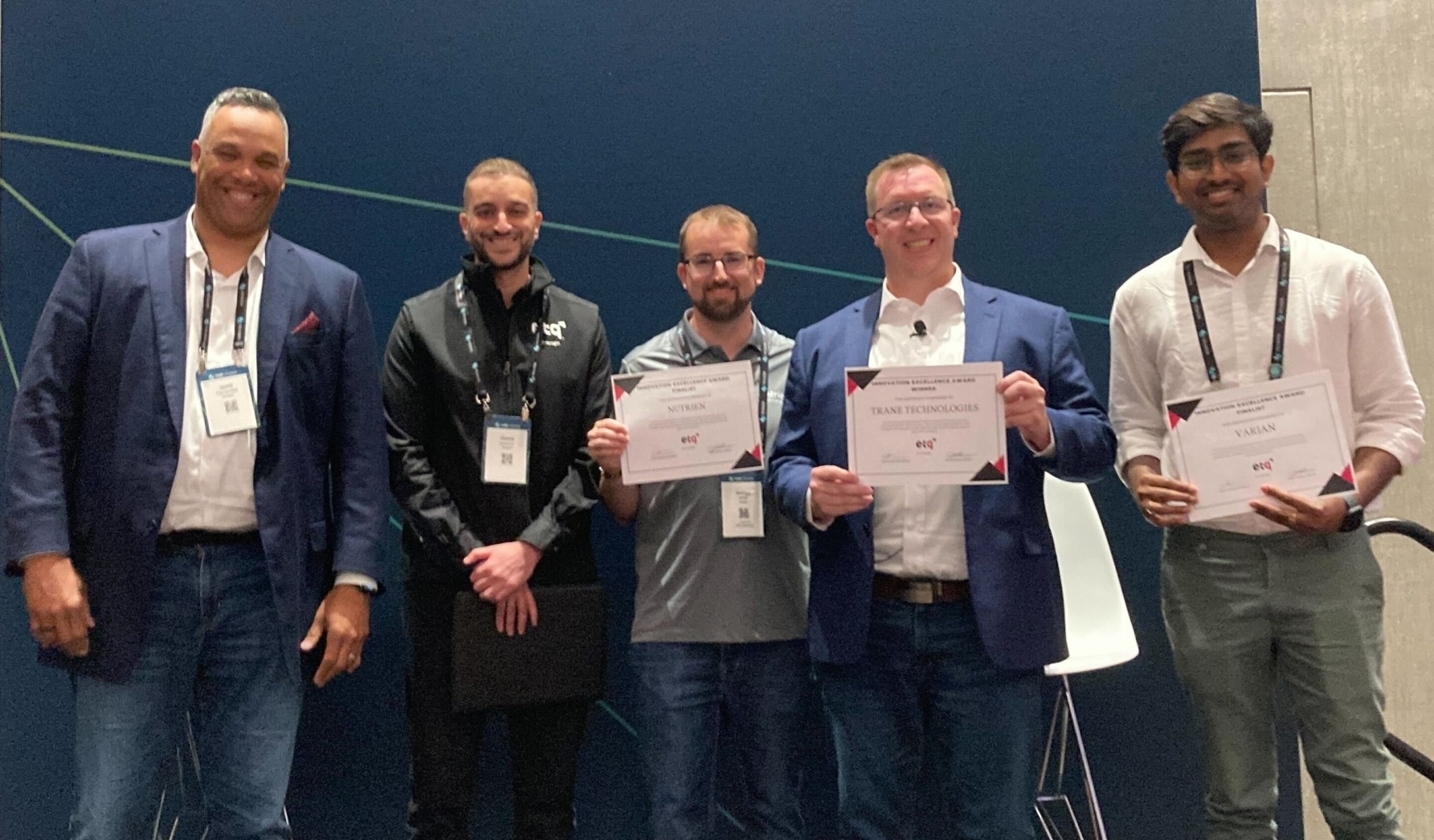 Finally, as we do every year, we awarded the ETQ Quality Innovation Award to a customer that demonstrated exceptional creativity, ingenuity and results thanks to the flexibility of ETQ Reliance. The finalists this year included Nutrien, Trane and Varian Medical Systems, with Trane emerging as the 2023 Innovation Award winner.